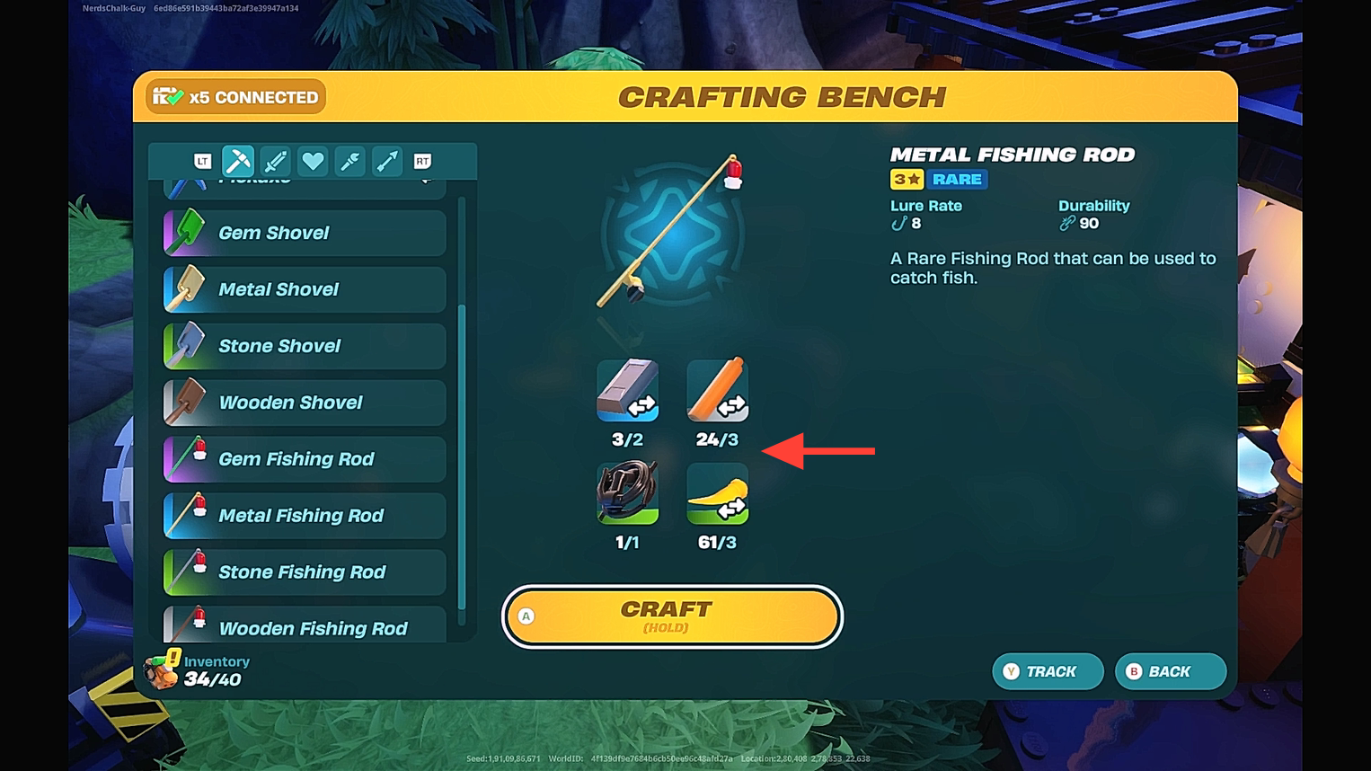 The sole purpose of the Metal Fishing Rod is help in fishing. To use it, reach the location where you want to fish, and select Metal Fishing Rod. Pressing the RT button will cast the rod in the water.