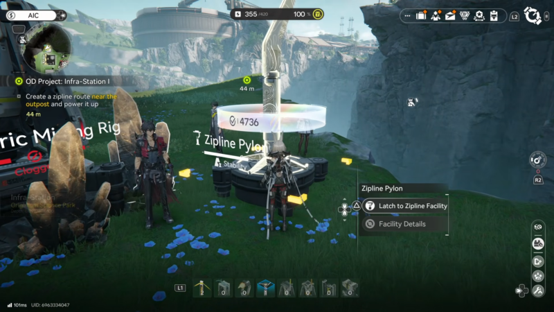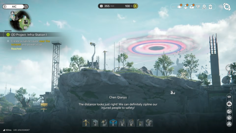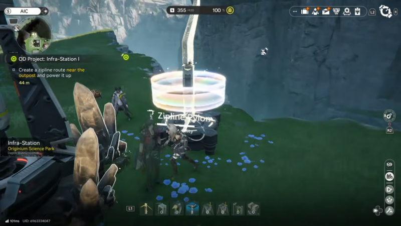 The zipline cannot be placed until the AIC Factory Plan unlock is done. The fastest way is to open the radial/wheel menu and enter the AIC Factory Plan “simulation,” then focus progress on the right-side nodes until Field Mobility I is reached.