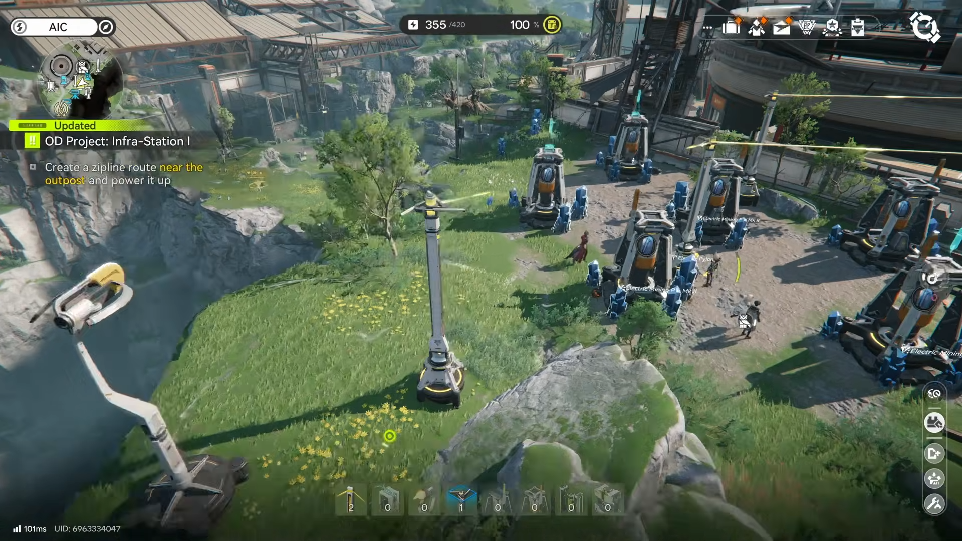 The zipline cannot be placed until the AIC Factory Plan unlock is done. The fastest way is to open the radial/wheel menu and enter the AIC Factory Plan “simulation,” then focus progress on the right-side nodes until Field Mobility I is reached.