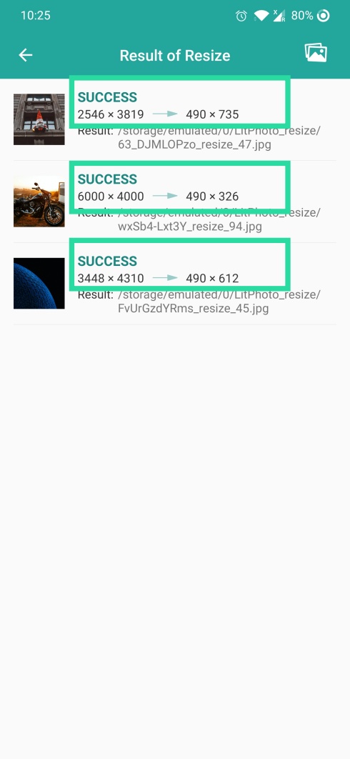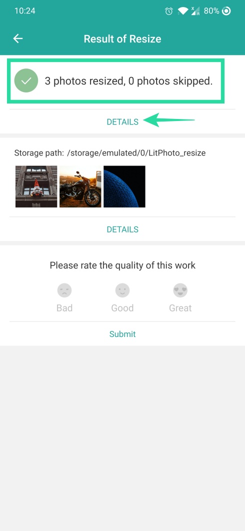 Step 8: Tap on Details to check the output size of the resized images.