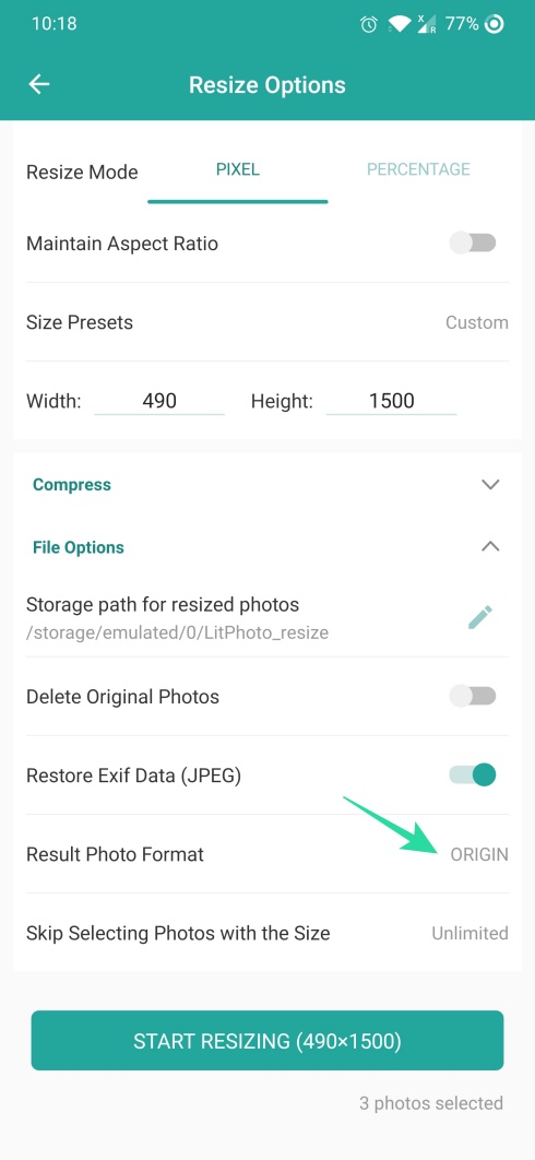 Step 6: Tap on Result Photo Format under File Options and select the output image format(JPEG/PNG).