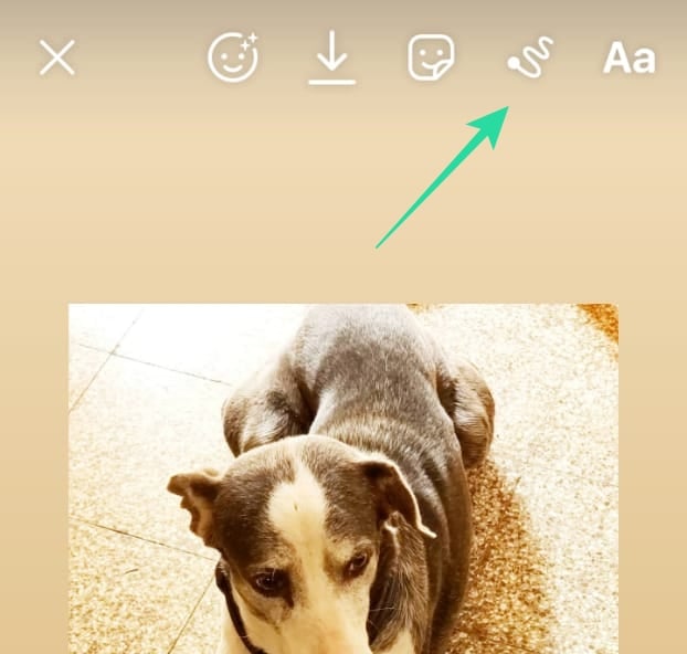Once you have shared the post to your story, tap the ‘Draw’ button in the top panel.