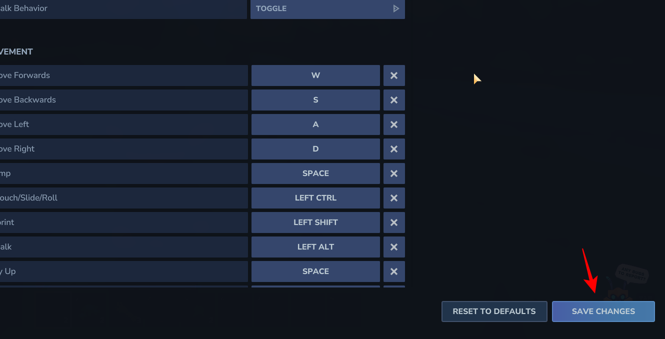 After you’ve selected your preferred crouch mode, don’t forget to click the “Save Changes” button. Your new crouch behavior will now be active in the game.