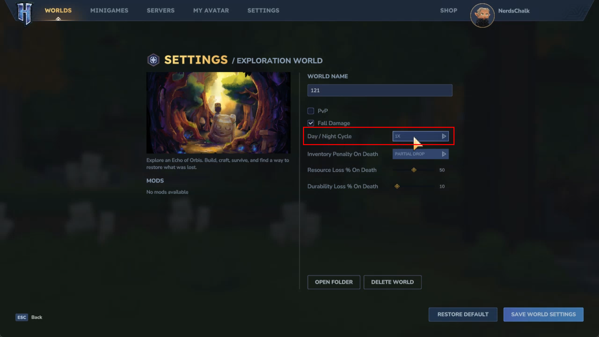 Hytale lets you easily change the day/night cycle of your worlds so that the cycle moves faster or slower than it does currently. The option to do so is found in your World's settings. Here's how to go about changing it.
