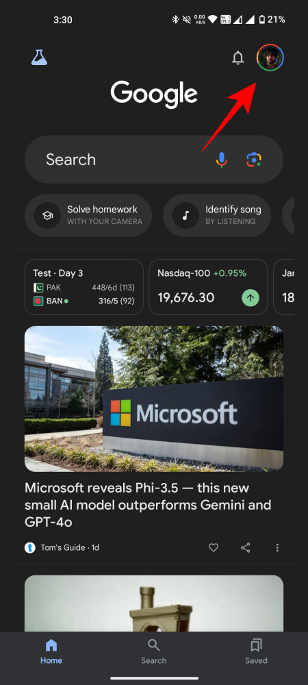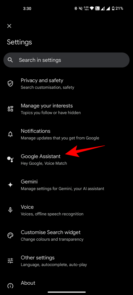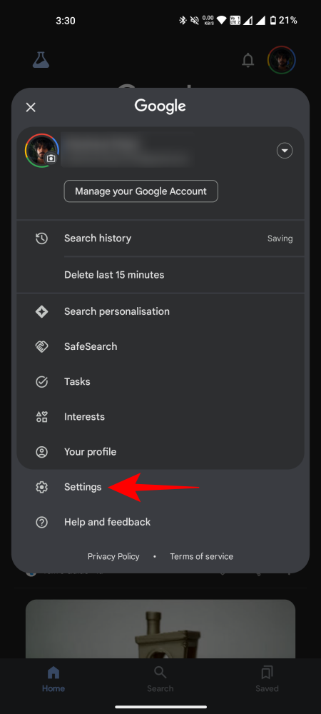 - Open the Google app. Tap on the profile icon and select Settings.