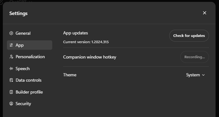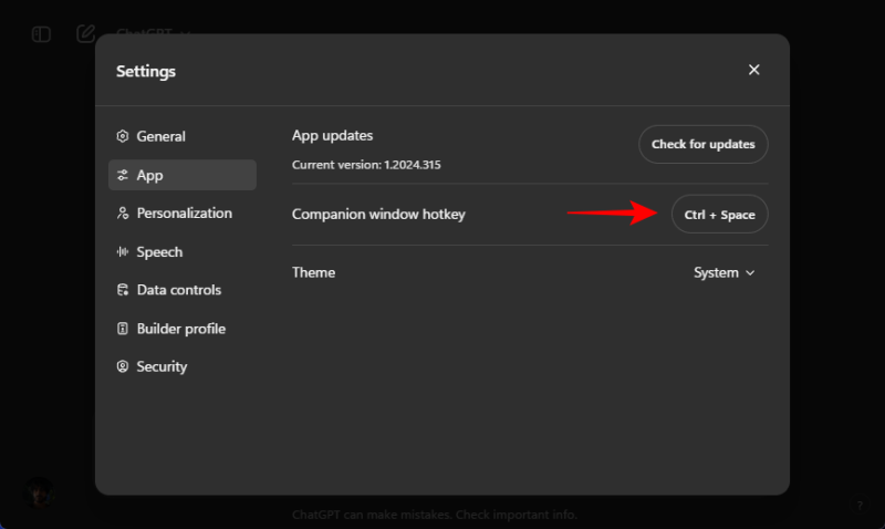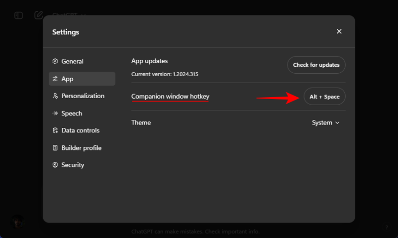 There’s also a shortcut to quickly launch ChatGPT – Alt+Space. But for power users who use tools like PowerToys, this hotkey combo may already be taken. Fortunately, the ChatGPT app lets you customize the shortcut. Here’s how to do so: