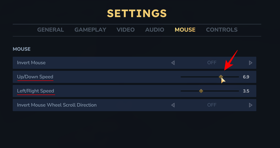 In the mouse settings, you'll find the "Up/Down Speed" and "Left/Right Speed" options. Simply move the sliders to adjust the sensitivity to your liking. The default setting is 3.5, but you can change it from 0 to 10.