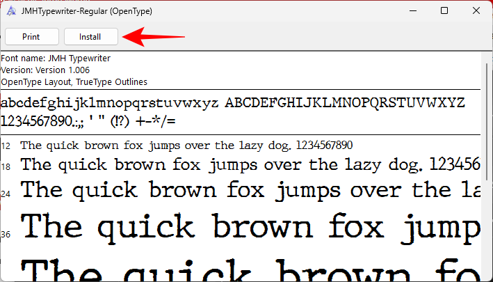 - Make sure to change NEW-FONT to the exact name of your font as noted earlier. In our example, our font is called ‘JMH Typewriter’, and thus the content of the notepad files looks as such: