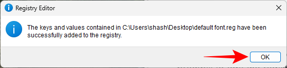 - Create a .reg file using the code given in the guide and replace the default system font with the name of your preferred font. Then run the .reg file and restart.