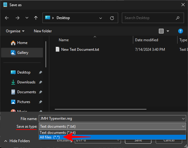 - Change ‘Save as type’ to All files.