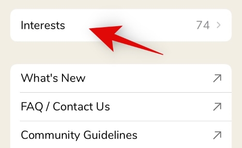 Tap on ‘Interests’ to get a list of your current interests.