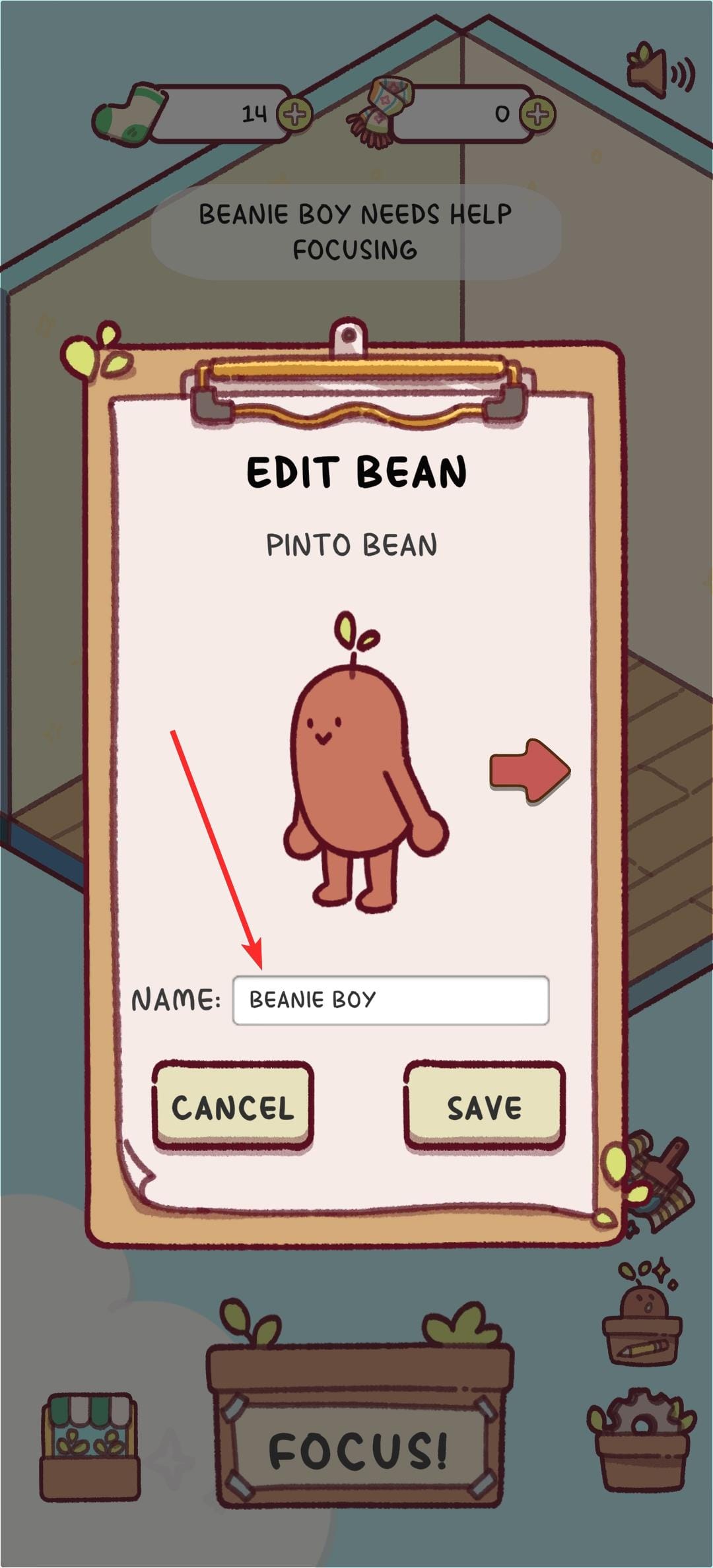 Changing the name of your bean in Focus Friend is quite easy! Here's how to do this