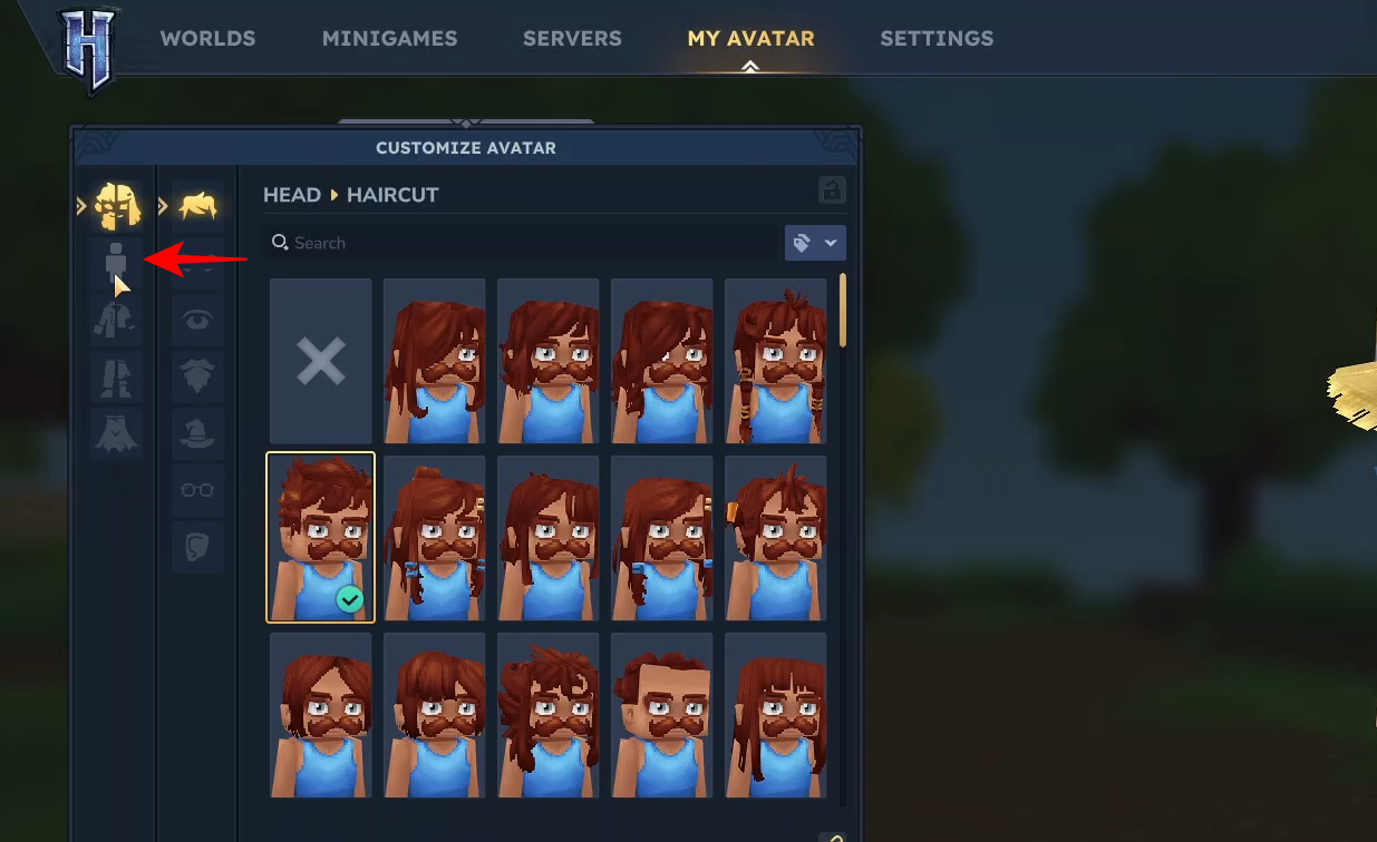 Look for the icon that looks like a person’s head and torso. Click on this icon to access your body settings.