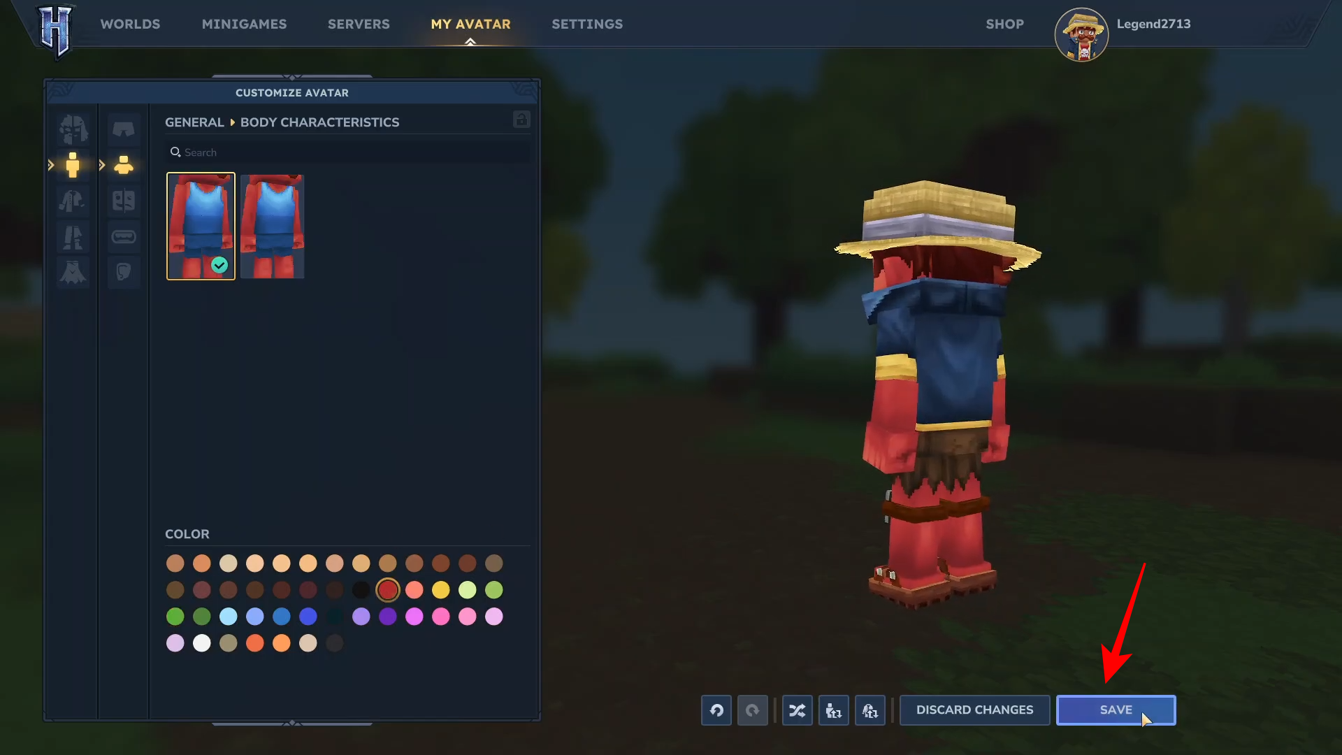 Click the Save button in the bottom-right corner to apply the new skin color to your avatar.