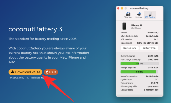 To get started with the app, you will need to visit the coconutBattery webpage and then click on the ‘Download’ button. Wait for the app to be downloaded on your Mac.