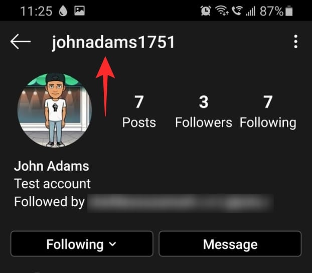 Next, you need to add the account’s handle. This can be found above the profile picture on the profile. The account handle should be in box brackets as shown above. Also, add an @ before the user’s handle. The handle is followed by a period.