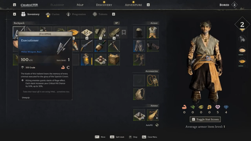 The Executioner is classified as a rare melee halberd with a base value of 100 ATK, which is significantly stronger than your starter weapon. Its real strength, however, comes from its passive effect. Each time you kill an enemy, you gain a Rage stack, and each stack boosts your Critical Hit Chance by 10%, up to a total of 30%.