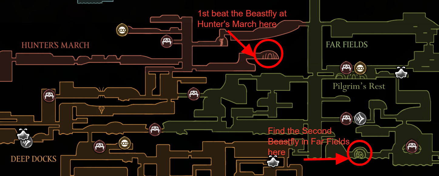 - The second Savage Beastfly fight appears in the Far Fields (the Fourth Chorus boss arena) after you accept a Bellhart “Grand Hunt” Wish.