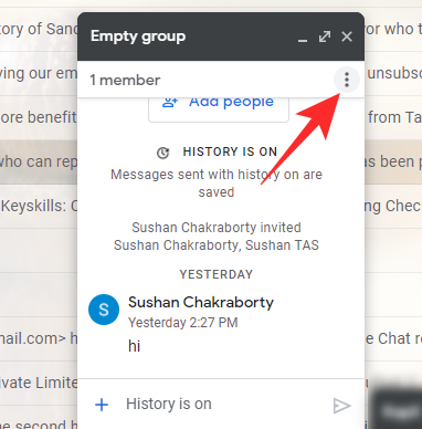 As we have mentioned before, Google Chat can also be accessed through Gmail. In this case, you will have to go to mail.google.com and log in with your username and password. Now, on the left of your screen, you will find your group conversation, sitting under the ‘Chats’ banner. Click on one to open.