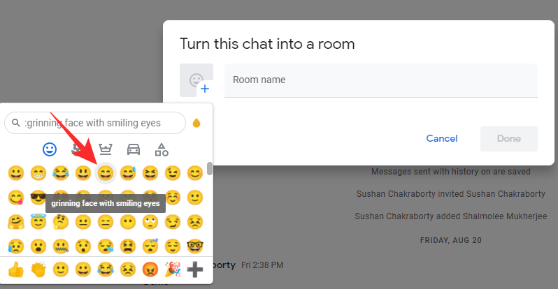 Clicking on it will reveal the entire emoji suite for your convenience. Click on any to set it as your default Room emoji.