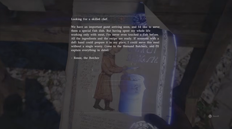 | Quest Location | Hernand (Bulletin Board & Meat Vendor Renee) |