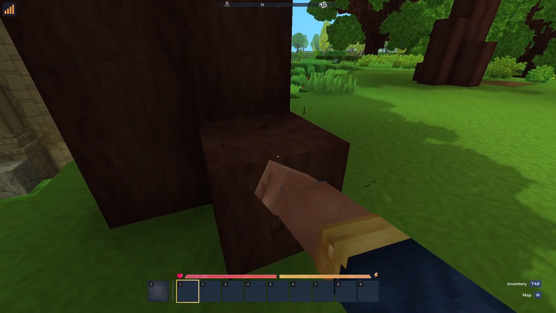 Punch the trees to harvest logs. Image credit: Hypixel Studios / Answer ASAP