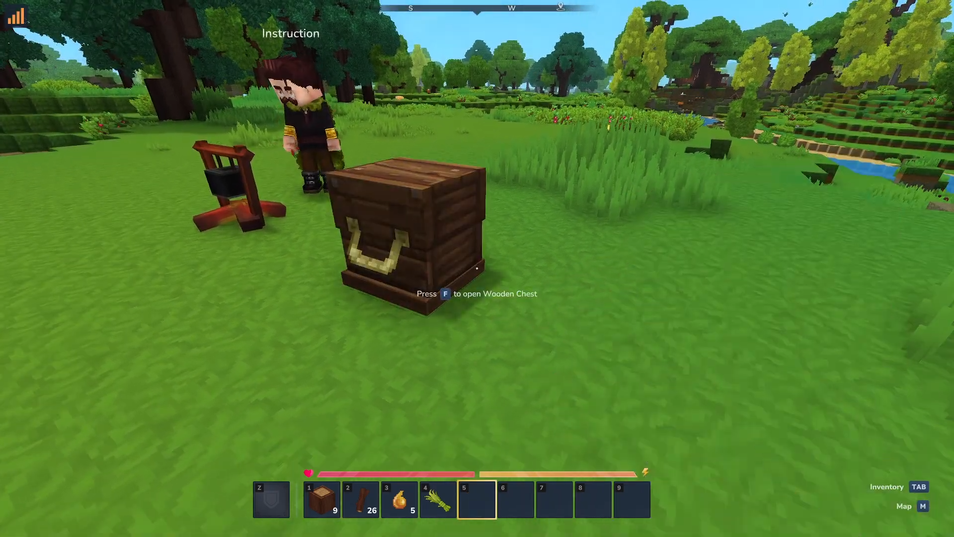 • Once crafted, place the chest on the ground and press F to open it for storage.