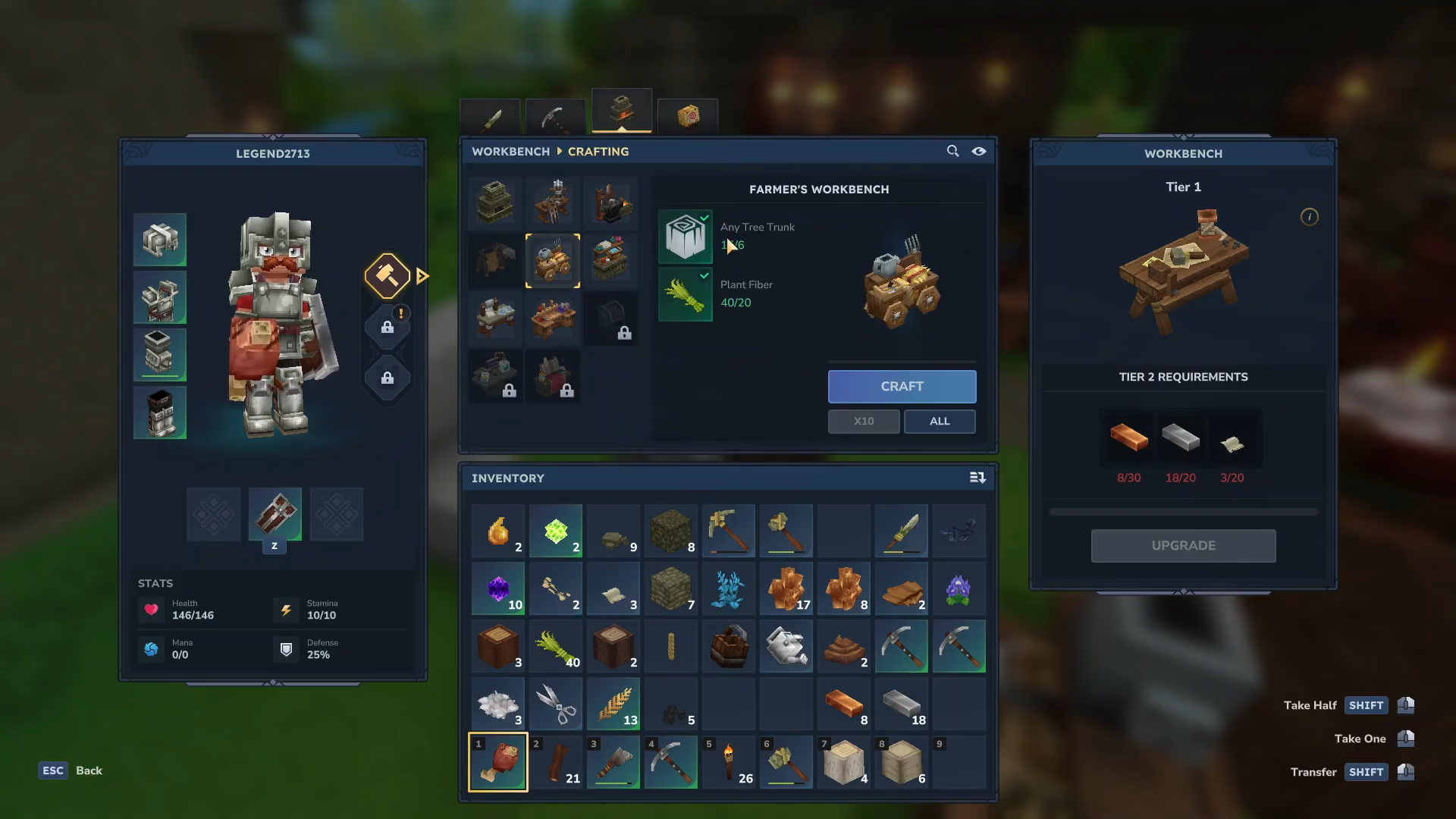From the standard Workbench menu, you must craft a Farmer’s Workbench, which requires six tree trunks and 20 pieces of plant fiber.
