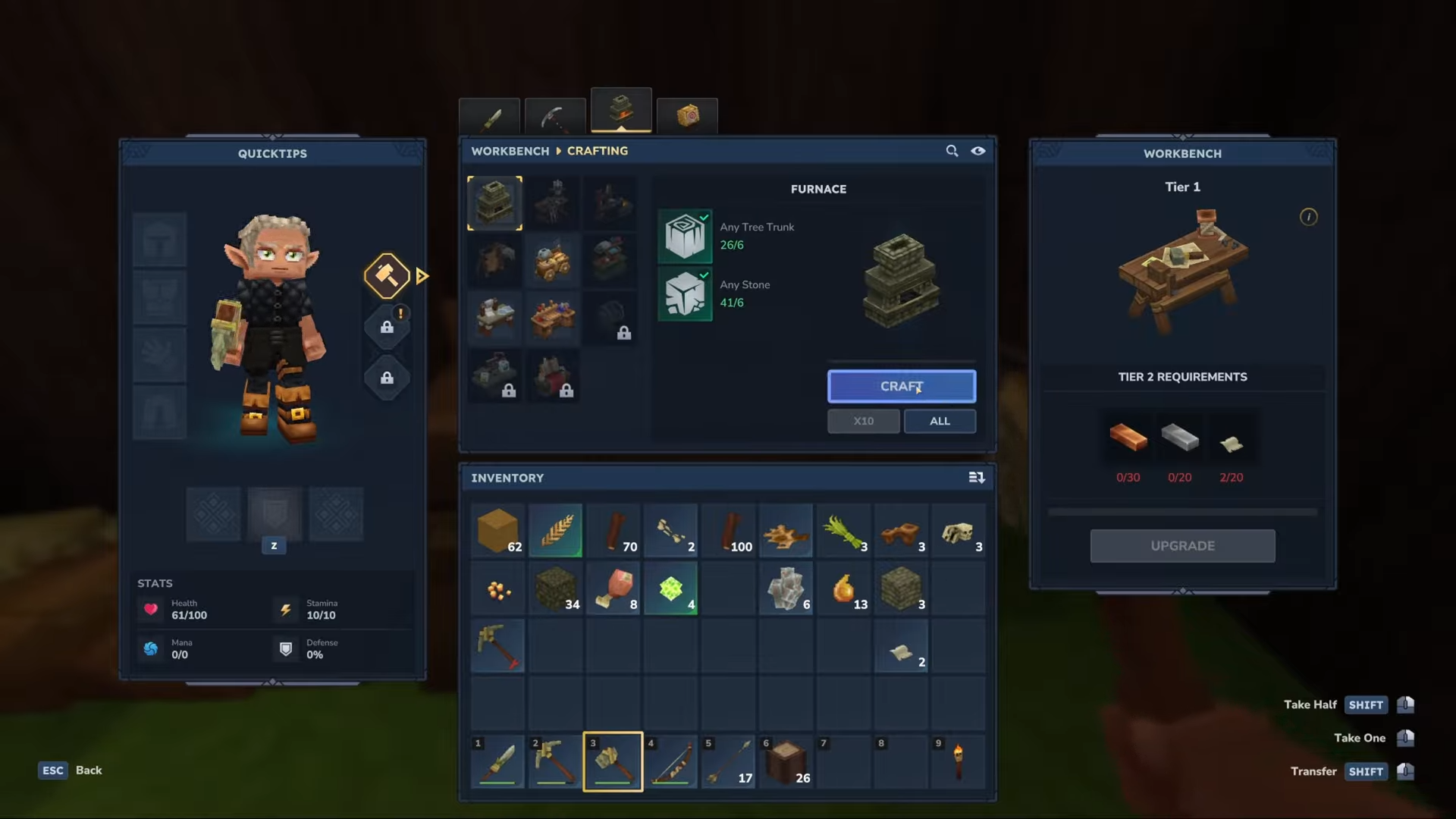 Select the furnace and click Craft. Make sure to stay in the crafting menu until the process is complete to ensure your furnace is successfully crafted.