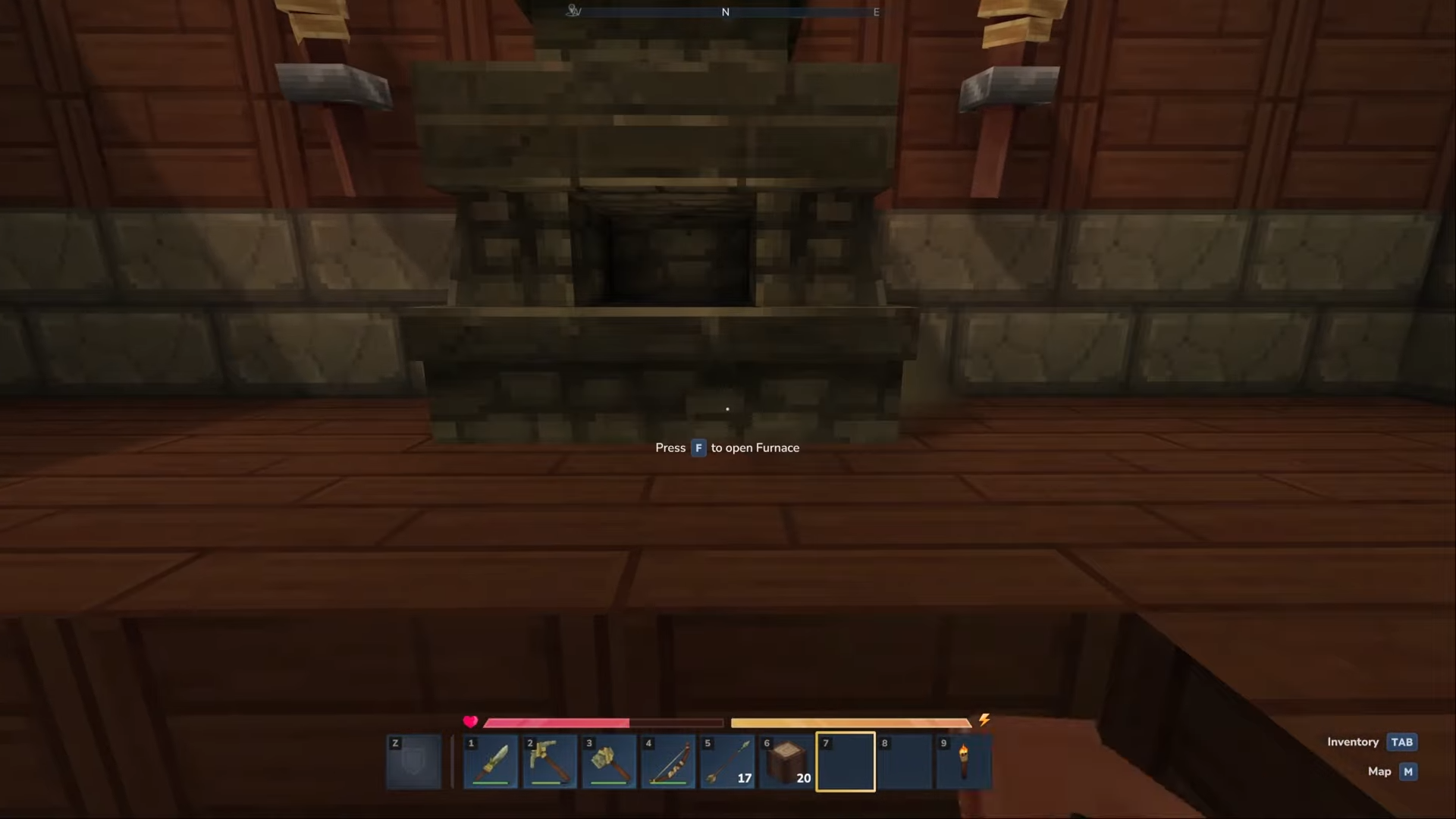 Once placed, interact with the furnace to begin smelting ores like copper and iron into usable materials.