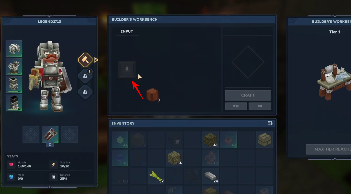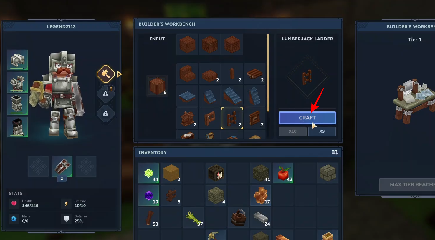 Click Craft to add the ladders to your inventory.