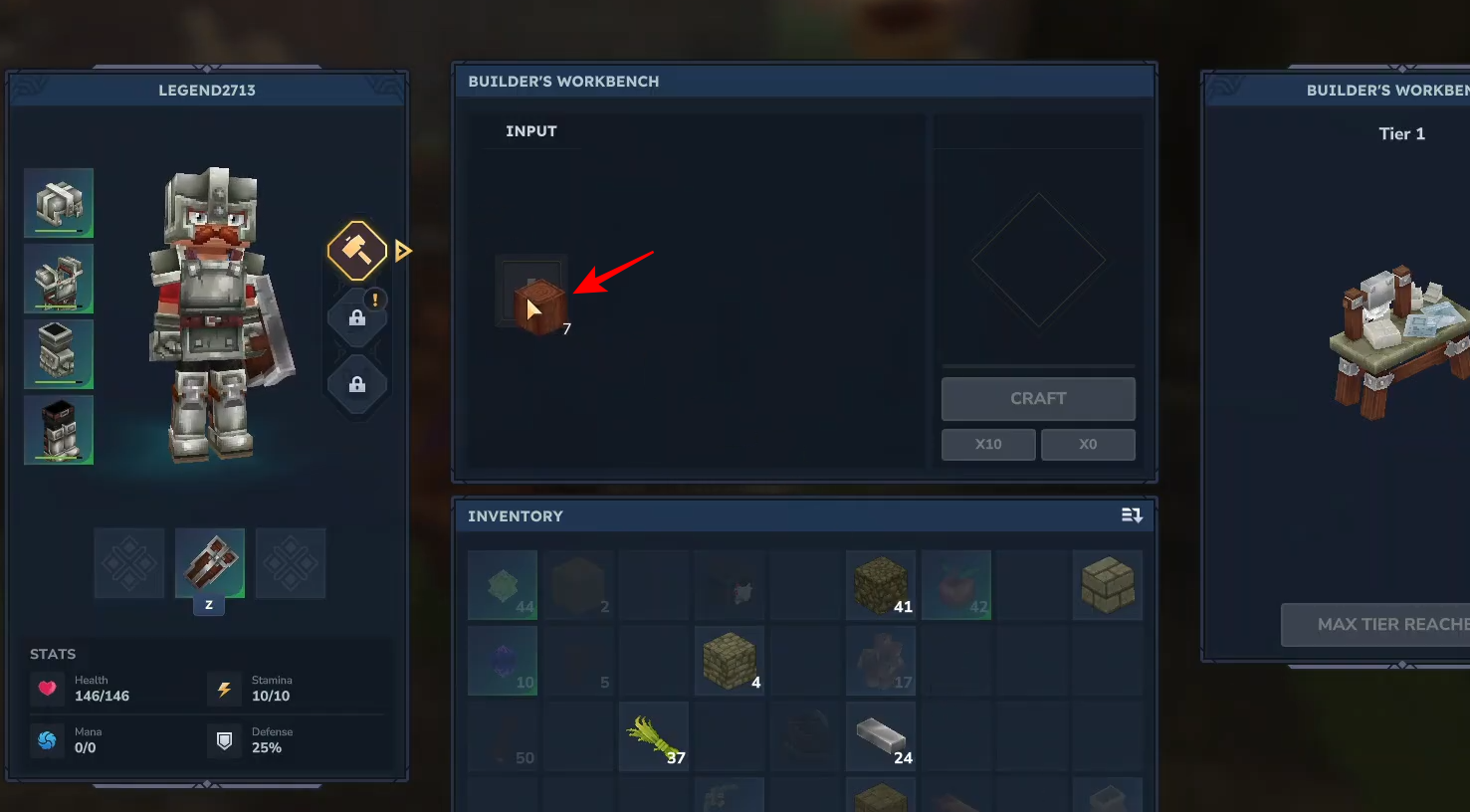 Select the Builder’s Workbench icon. You will need 6 tree trunks and 3 stone to craft this.