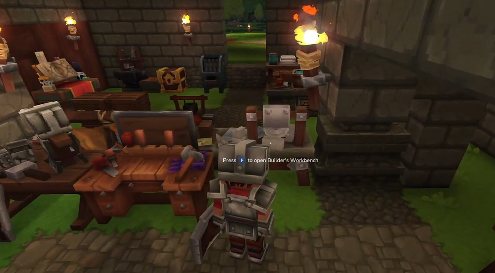Once you have placed your Builder’s Workbench, press F to interact with the Builder’s Workbench.