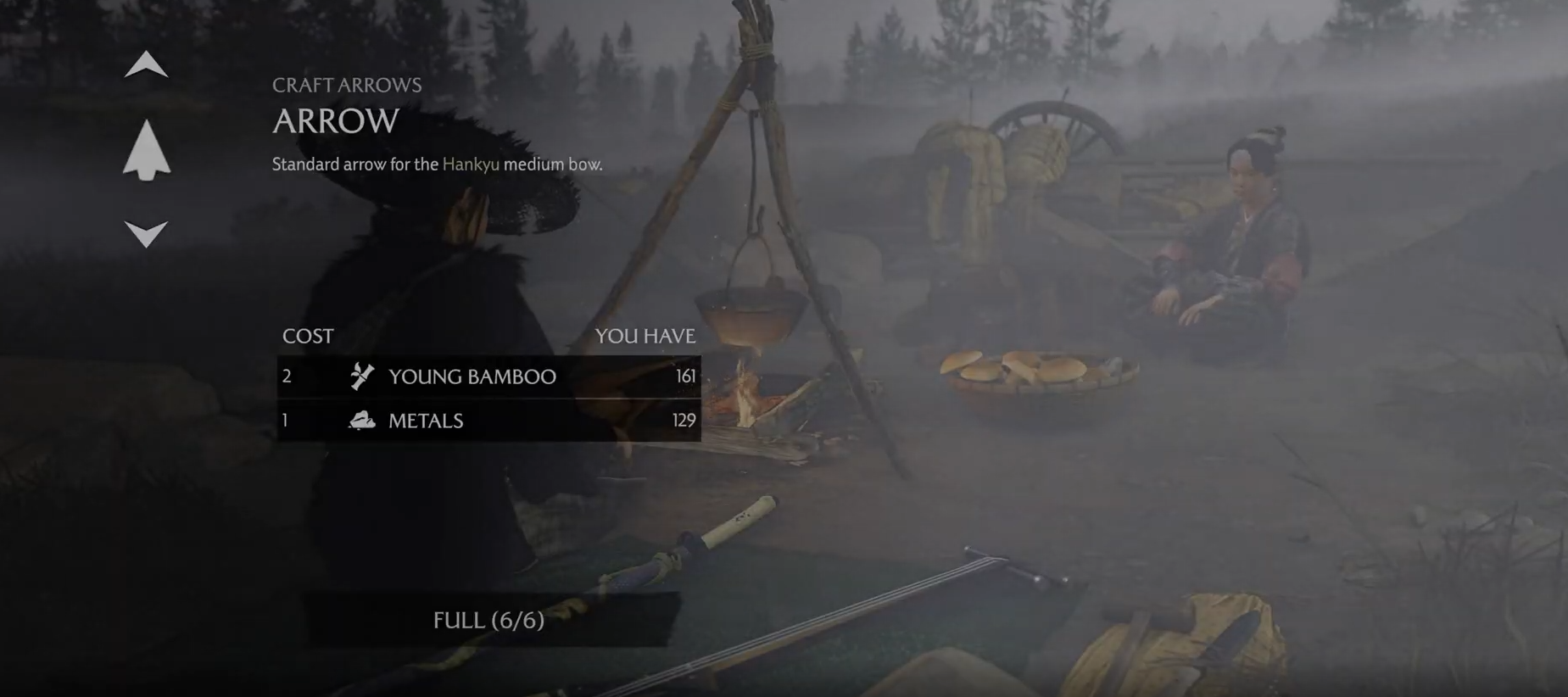 - Crafting is available for arrows, bullets, consumables, and throwables depending on the materials on hand.