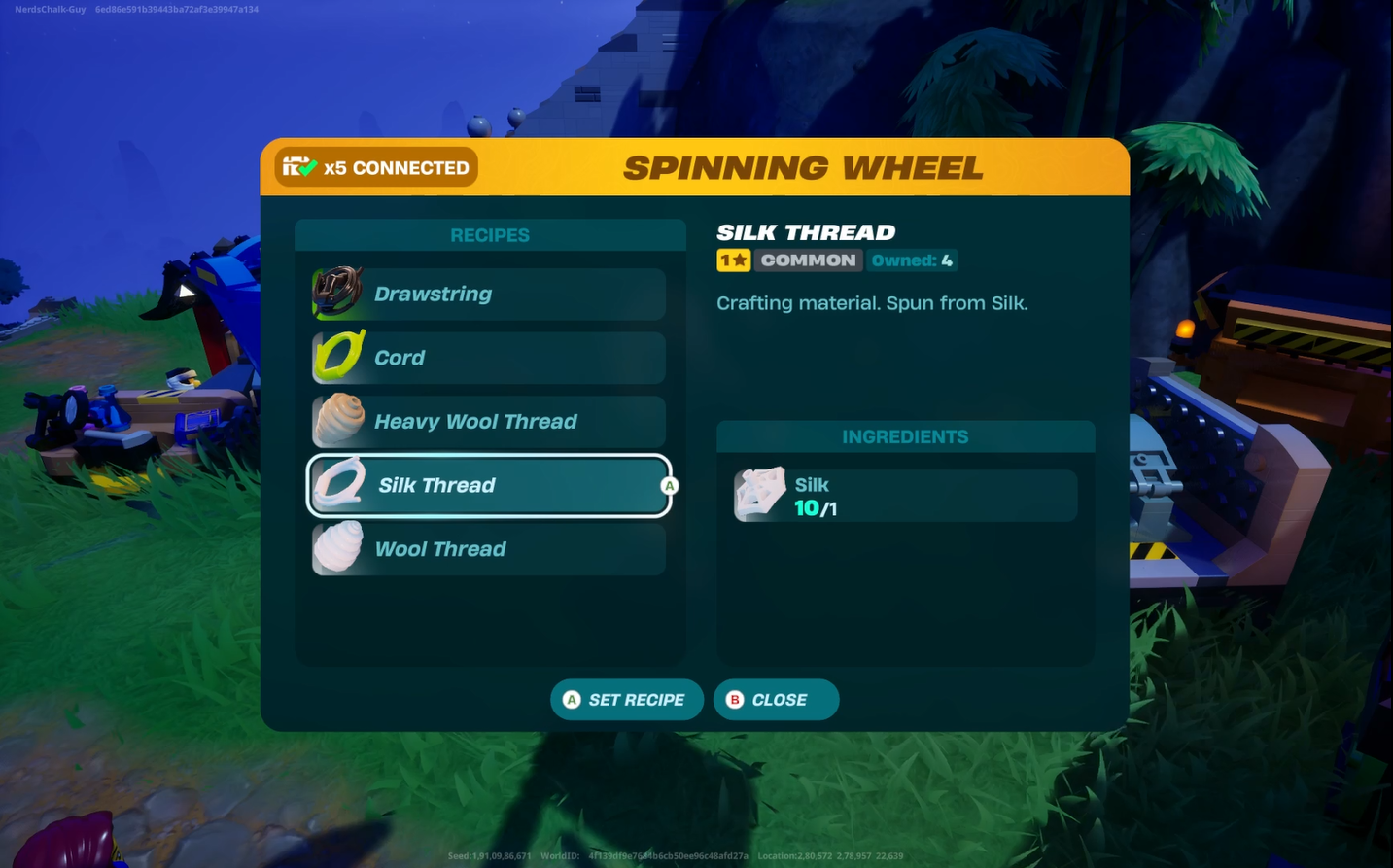 Next, use the Loom to refine the threads. Convert Silk Thread into Silk Fabric and Wool Thread into Wool Fabric. Each fabric requires 5 threads to produce 1 fabric.