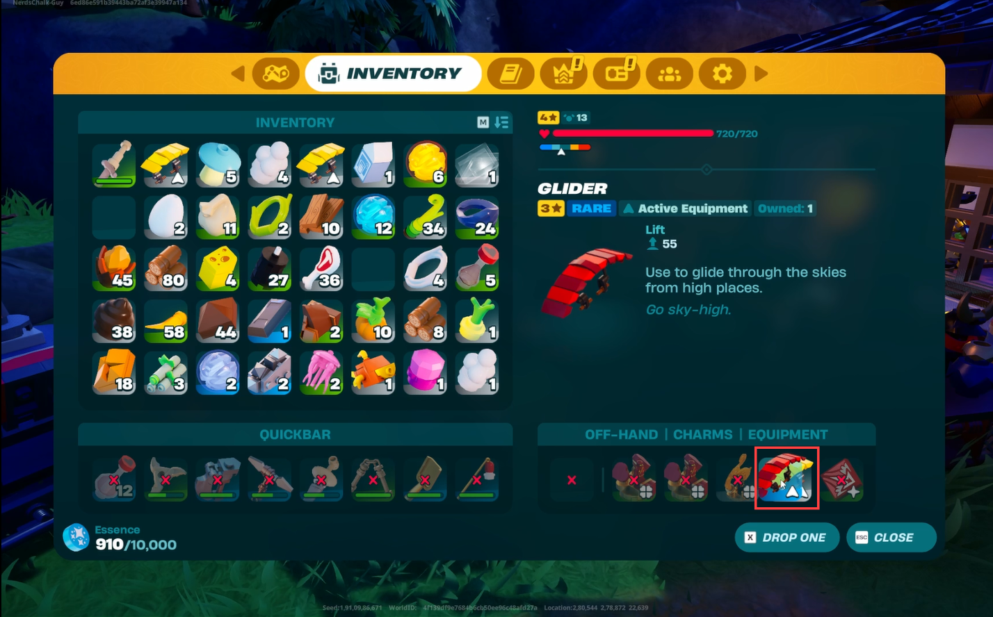 After crafting, the Glider is added to your inventory. Place it in your off-hand/charms/equipment slot.
