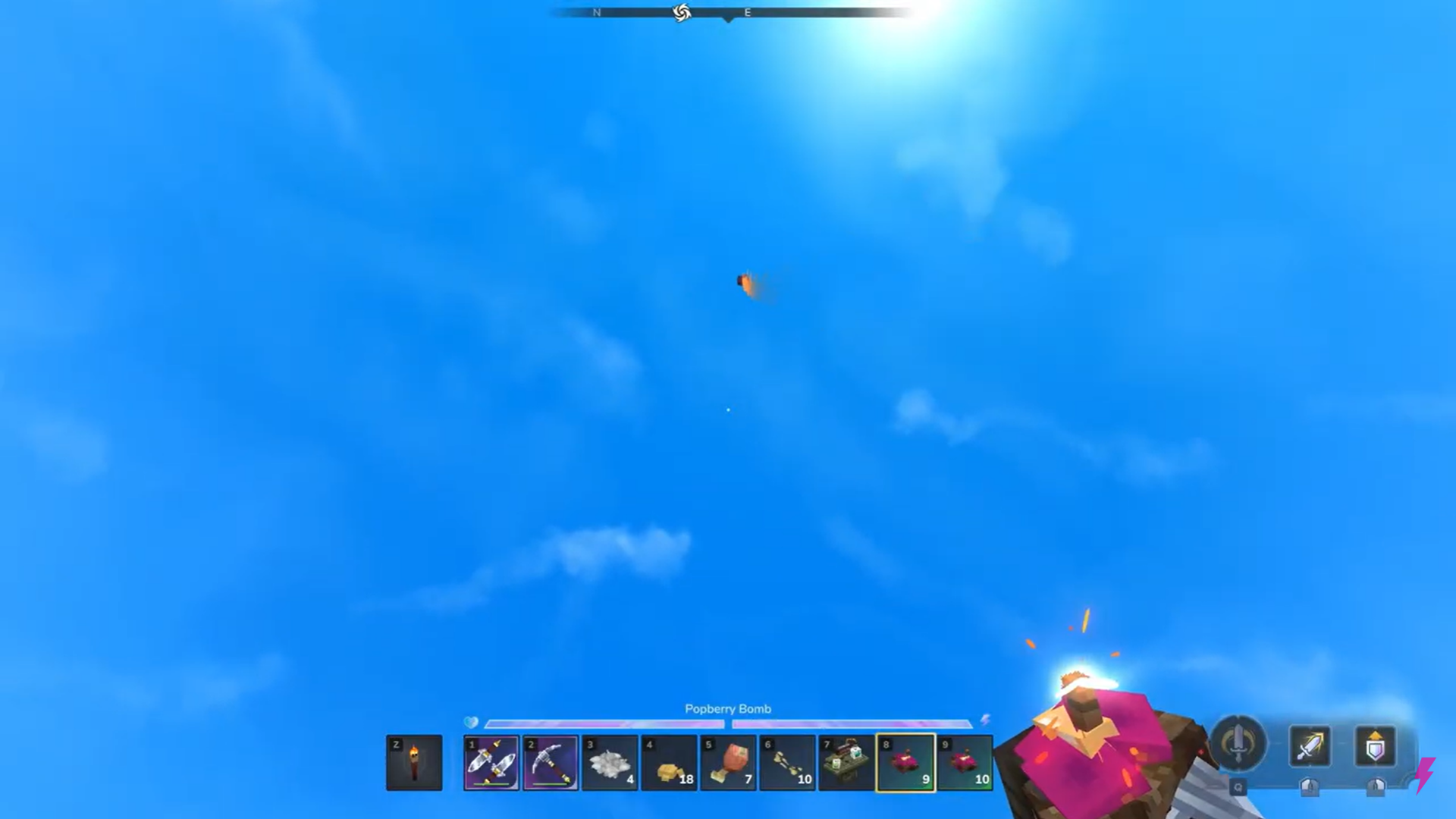 Place the Popberry Bomb in your hotbar and select it.