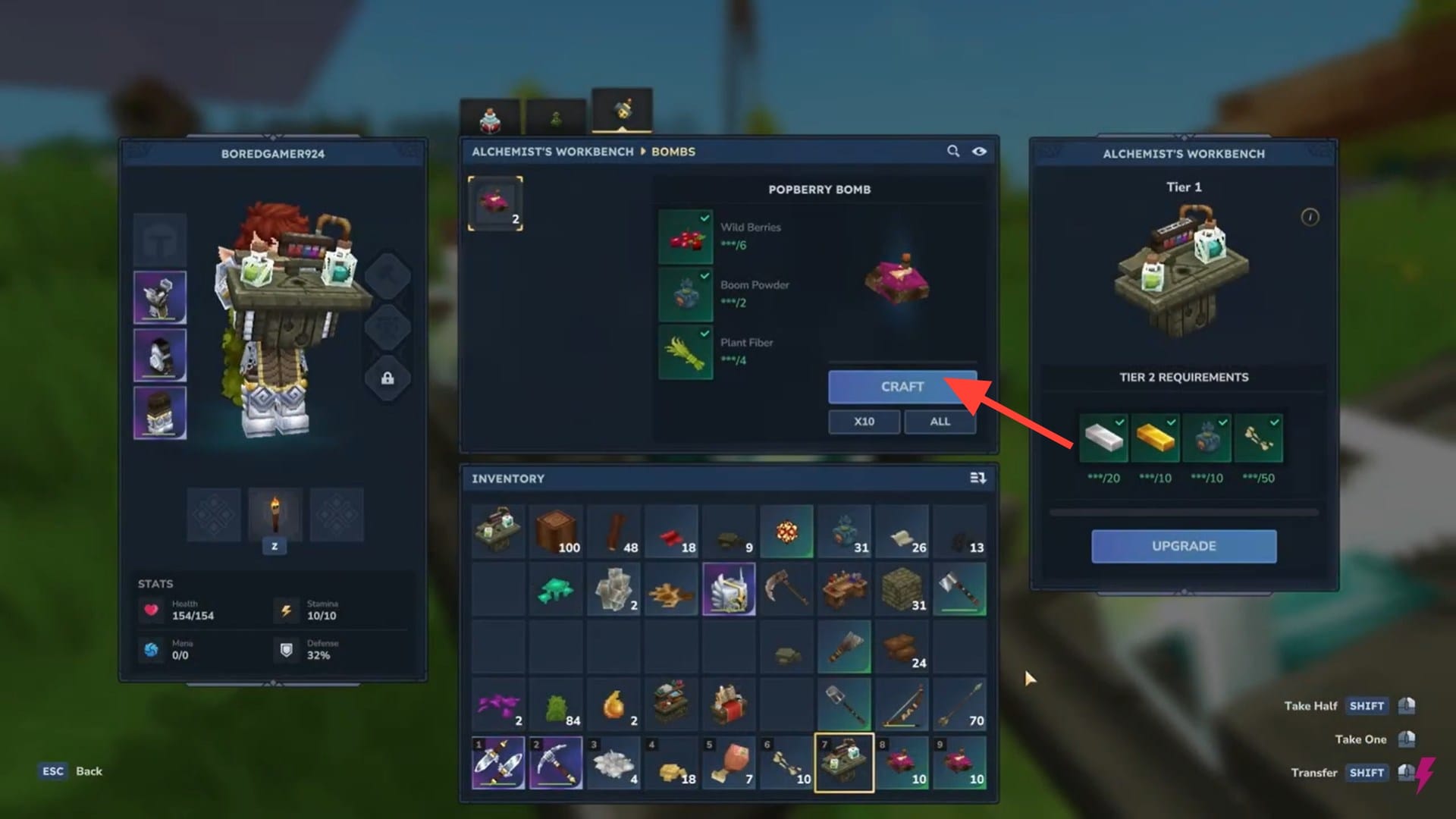 You need the Alchemist's Workbench to craft Popberry Bombs using the following materials: