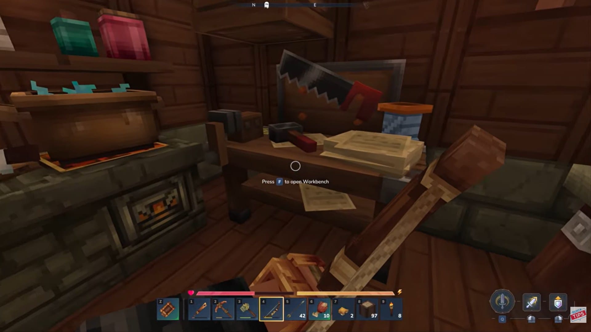 The Workbench unlocks most starter recipes, including the crude shortbow.