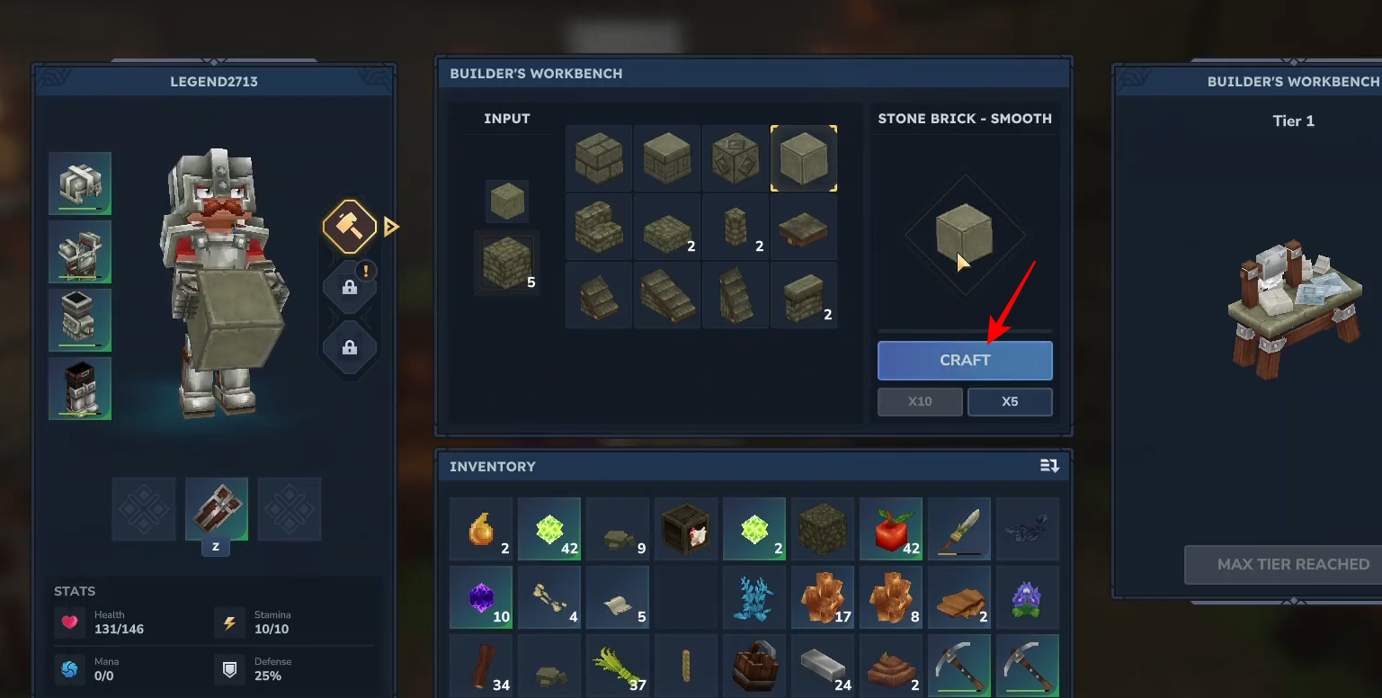 Click on craft to transform your raw stone into bricks.