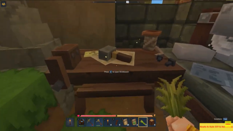 Once placed, interact with the Workbench and open its crafting menu to find the Crude Daggers recipe.