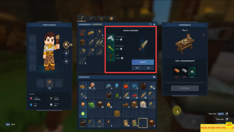 Because all three materials are common, you can usually craft Crude Daggers before encountering your first hostile enemies.