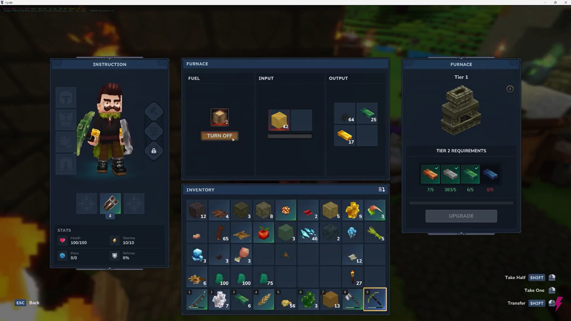 Return to your base and interact with your furnace. Open the furnace interface and place the collected sand into the input slot.