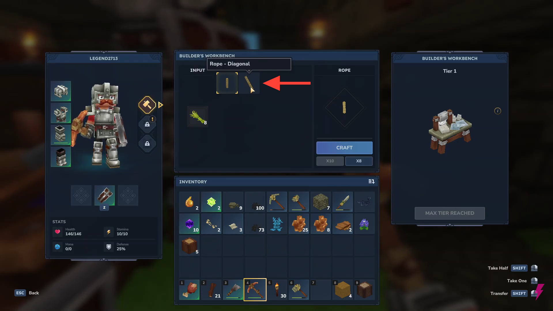 Once you have a Builder’s Workbench, crafting rope is easy, add Plant Fibers and choose between straight or diagonal rope. With these options, you can build and connect structures more creatively in Hytale.