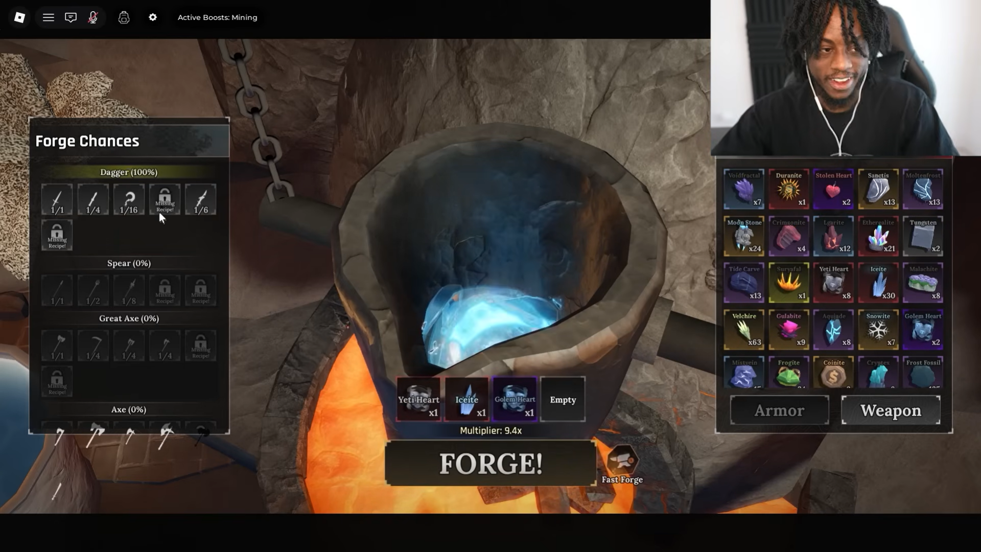 This stat combination makes Shark’s Fangs one of the strongest dagger rolls in The Forge, especially when crafted with Iceite and optimized forging minigames.
