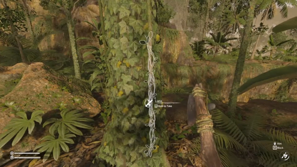 Ropes craft from 4 fibers (pulped from plants like liana or palm leaves), so harvest plants near your spawn and right-click to craft fibers into rope.