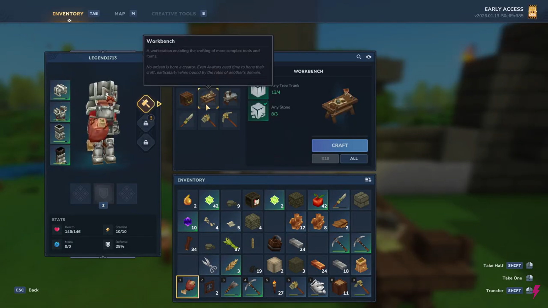Interact with the Workbench and craft the Builder’s Workbench using: