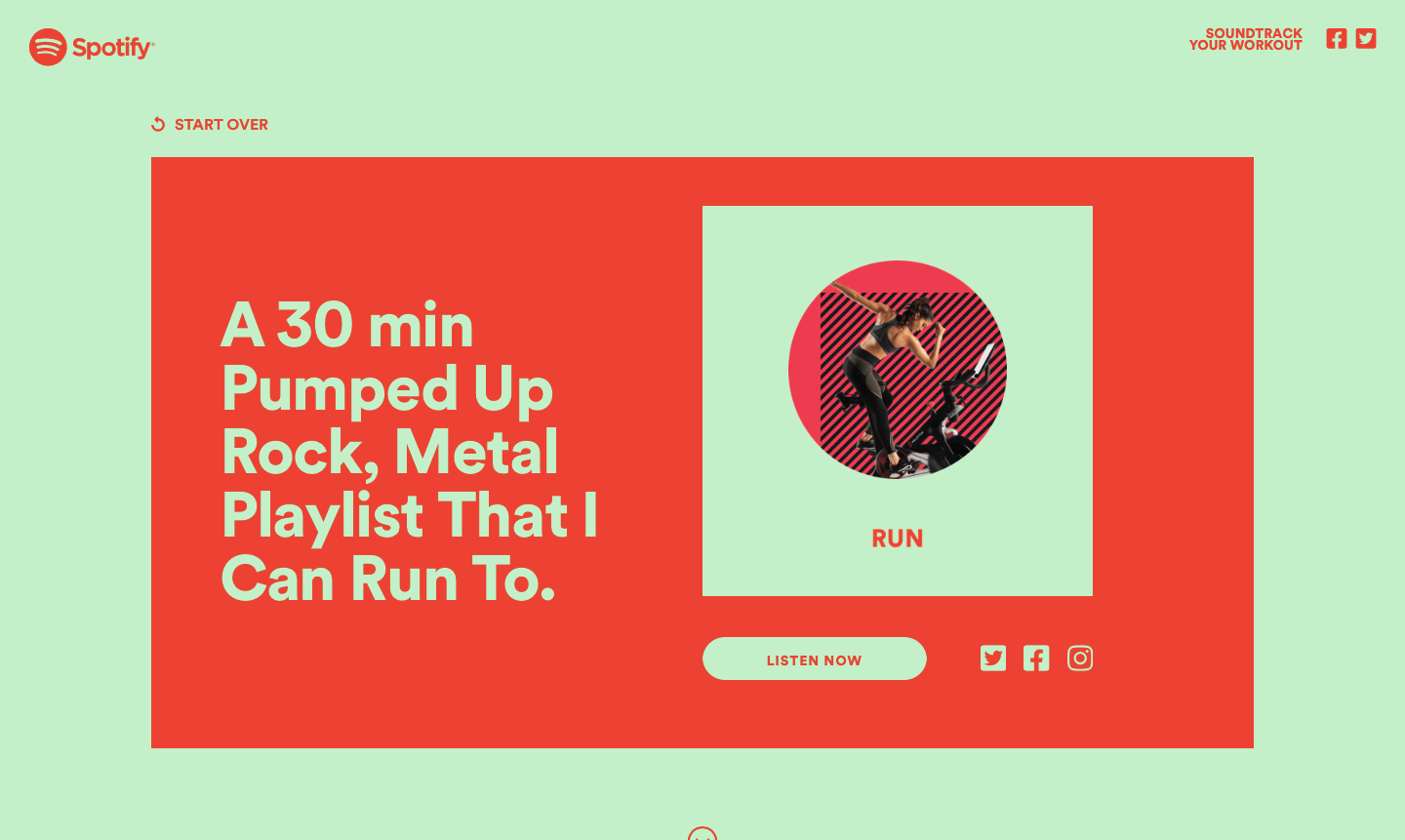 You can also share this playlist with others on Twitter, Facebook, and Instagram or start over to create another workout playlist.