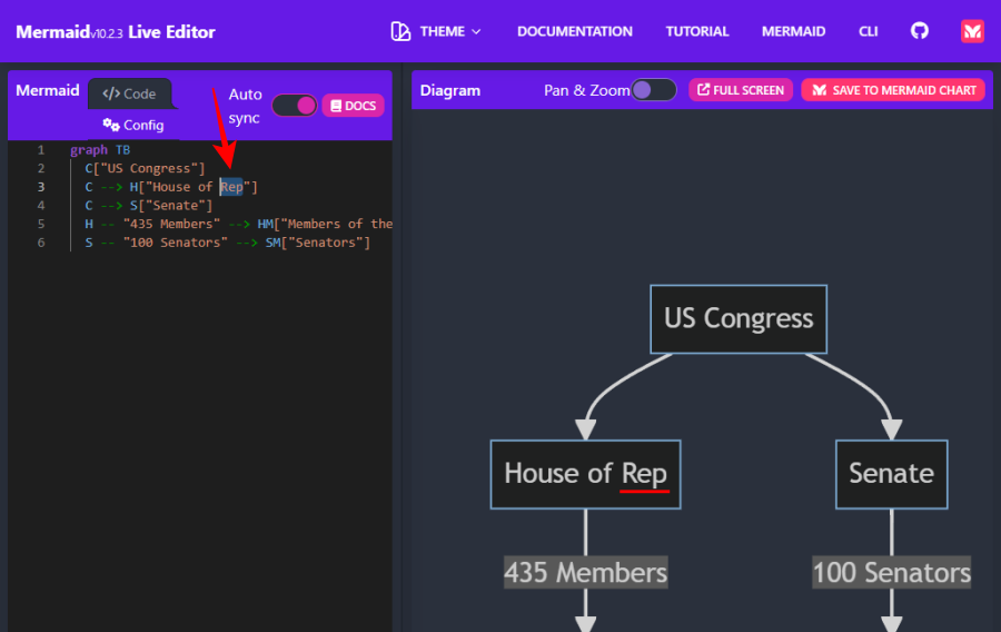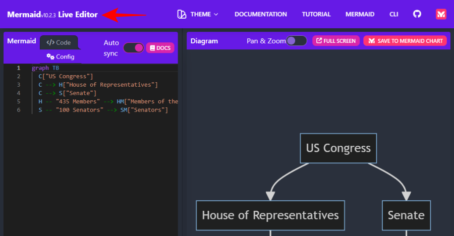This will open the diagram in a new Live Editor tab. Here, you can see the diagram language used (Mermaid).
