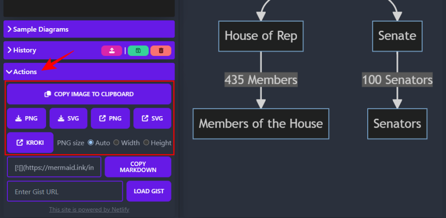 To save the diagrams, you can view the diagram in the new tab and save it by right-clicking on it and selecting the ‘Save as” option. Or, you can open the diagram in an online editor (also provided in ChatGPT’s response) where you can click on the ‘Actions’ tab and save the image in one of the available image formats.